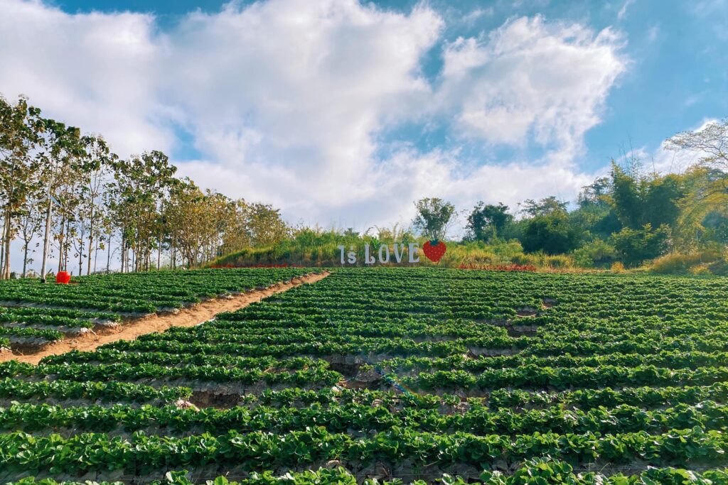 ” ไร่สตรอเบอรี่ ฟ้าใส วังน้ำเขียว ” เที่ยวแบบนิวนอร์มอล ยึดแนวทางตามหลัก Social Distancing เข้าชมฟรี ไม่มีค่าเข้านะคะ แวะมาถ่ายรูป ชิมสตรอเบอรี่ฟรี หรือถ้าอยากซื้อกลับบ้านก็สามารถเข้าไปเลือกเก็บเองในไร่ หรือจะซื้อแบบแพ็คไว้แล้วก็ได้ นอกจากสตรอเบอรี่สดๆแล้วทางไร่ยังมีผลิตภัณฑ์แปรรูปจากสตรอเบอรี่อีกมากมาย